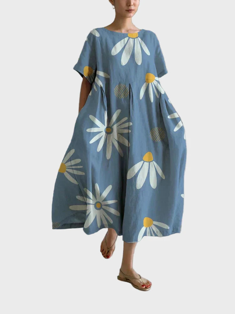Lyra|Lehké Květinové Šaty Volném Střihu S Krátkými Rukávy