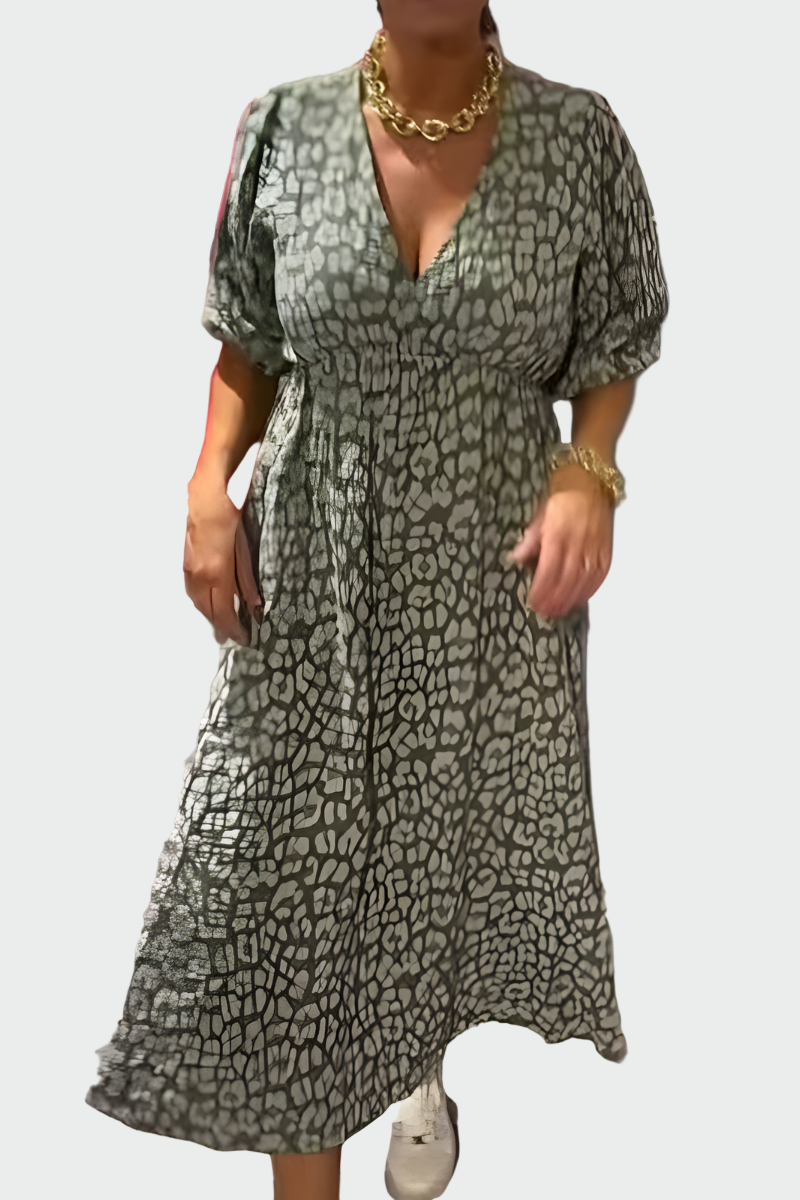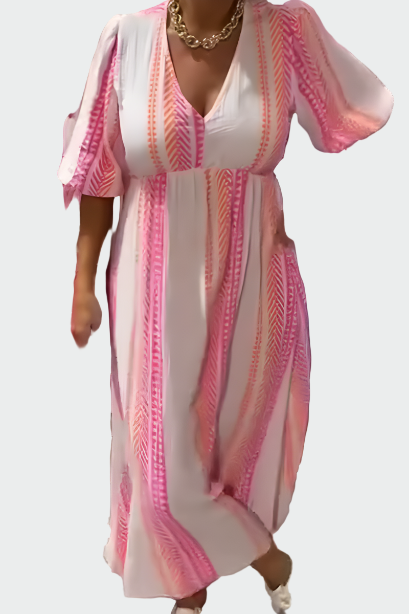 Αέρινο Φόρεμα με Γραμμικά Σχέδια και V Λαιμόκοψη