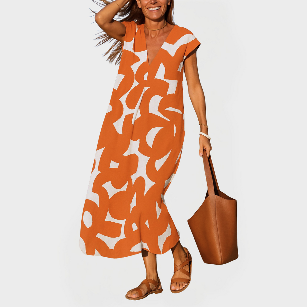 Αέρινο Φόρεμα με V Λαιμόκοψη και Σύγχρονο Σχέδιο