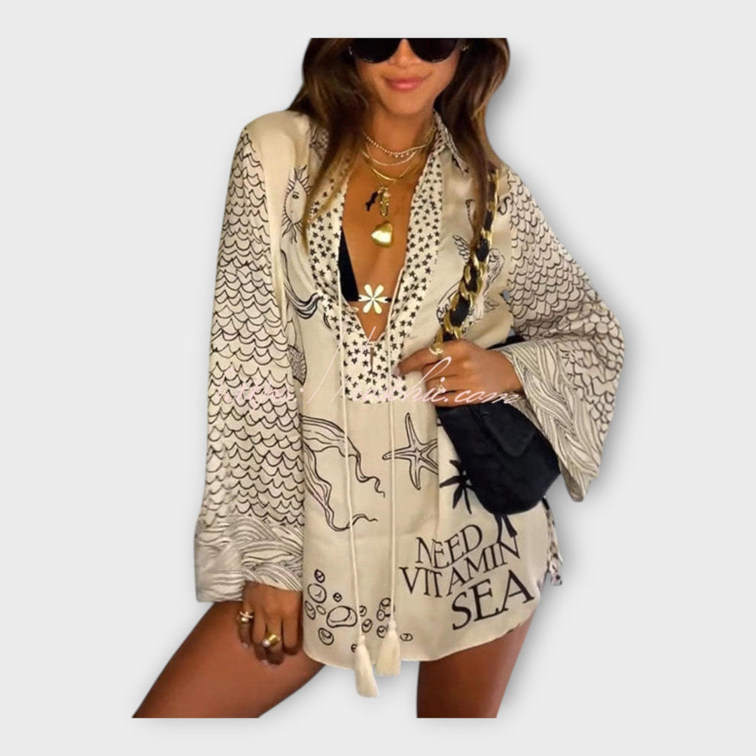 Αέρινο Φόρεμα με Εξωτερική Ζακέτα και Μοτίβα