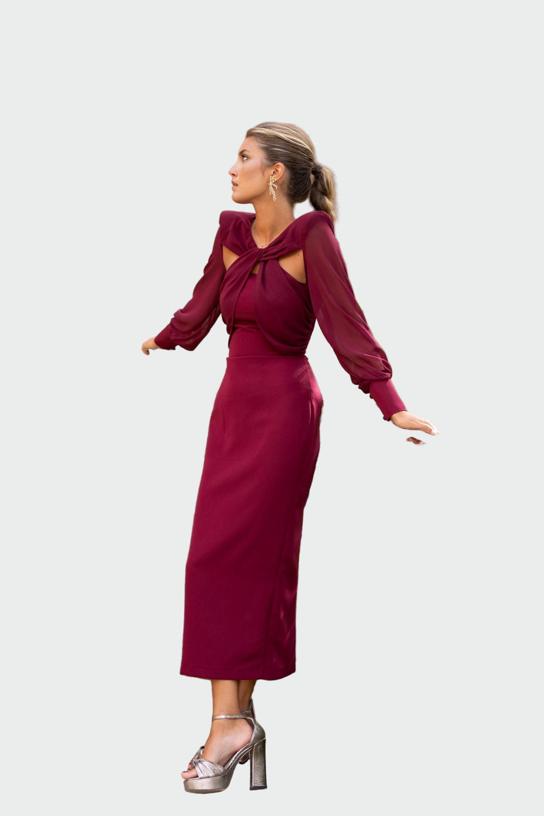 Κομψό Midi Φόρεμα με Στυλάτη Γραμμή