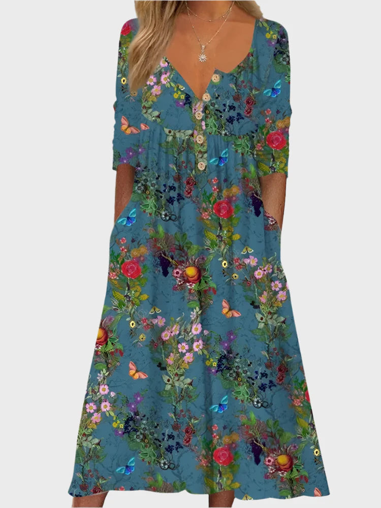 Κομψό φόρεμα με λουλουδάτο σχέδιο