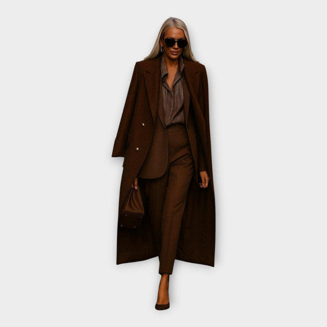 Κομψό σετ με παντελόνι και παλτό σε minimální γραμμή