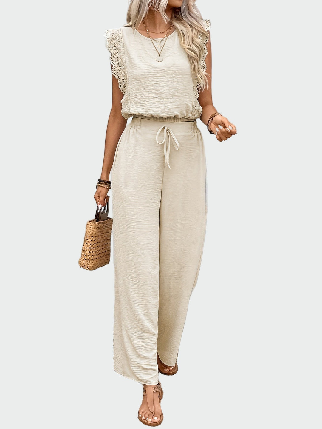 Κομψό σετ σακάκι και παντελόνι με δαντελένιες λεπτομέρειες