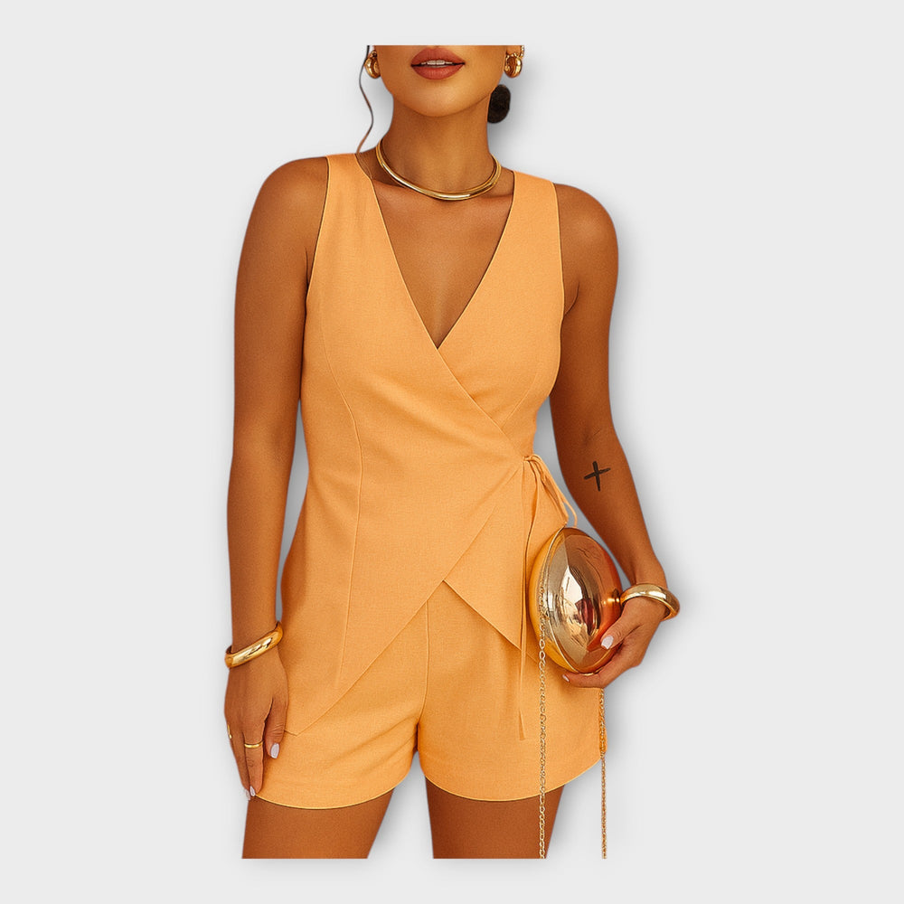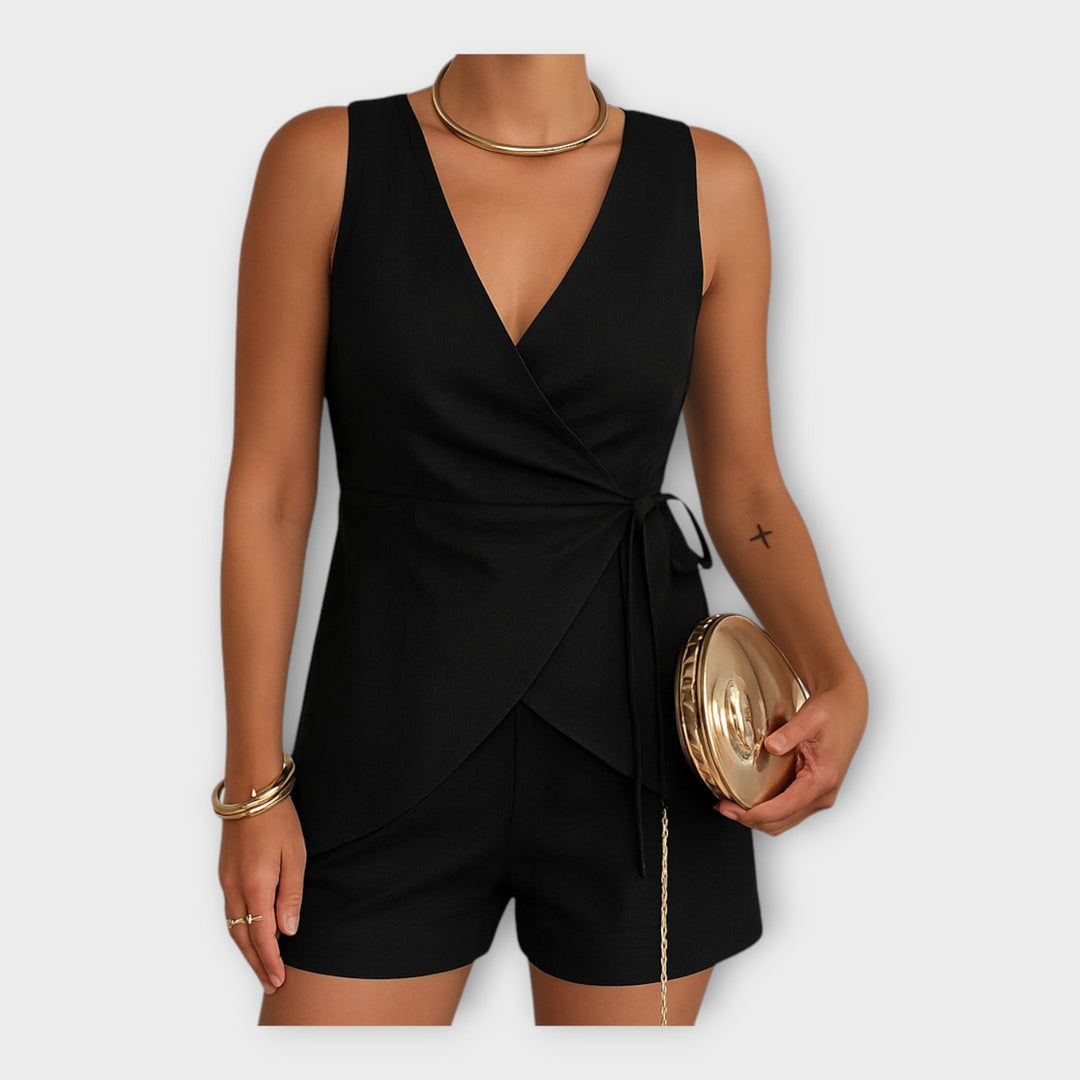 Κομψό Σορτς Σατέν με Σταυρωτό Τοπ