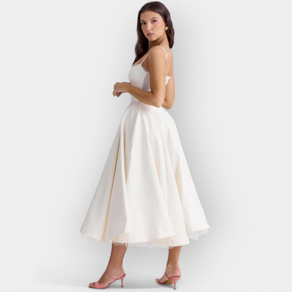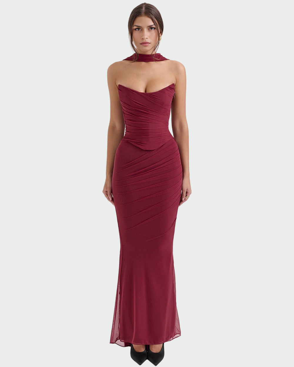 Λόρα | Μακρύ Ντραπαριστό Φόρεμα με Κολιέ-Κόρσαζ