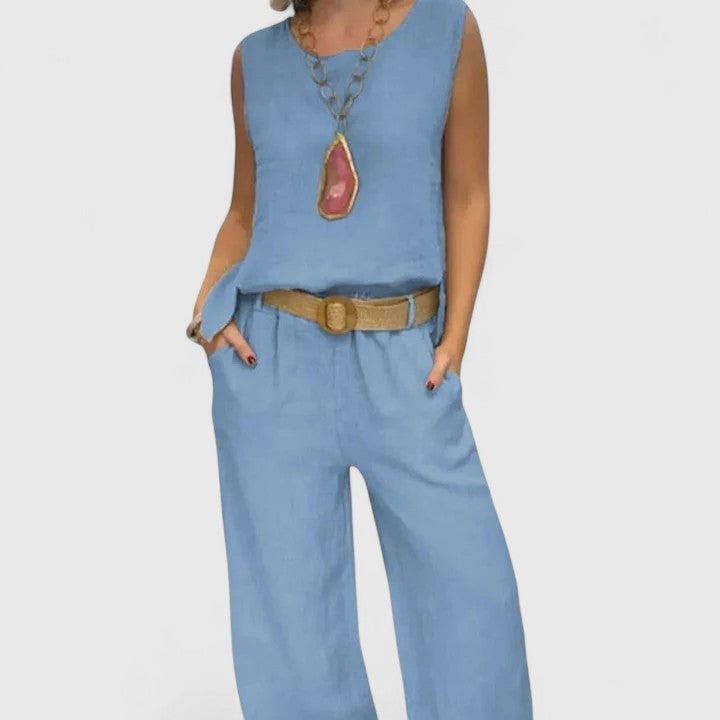 Kamila Elegantní Dvoudílná Sada je ideální volbou pro váš letní šatník, která spojuje styl a pohodlí v dokonalé harmonii.