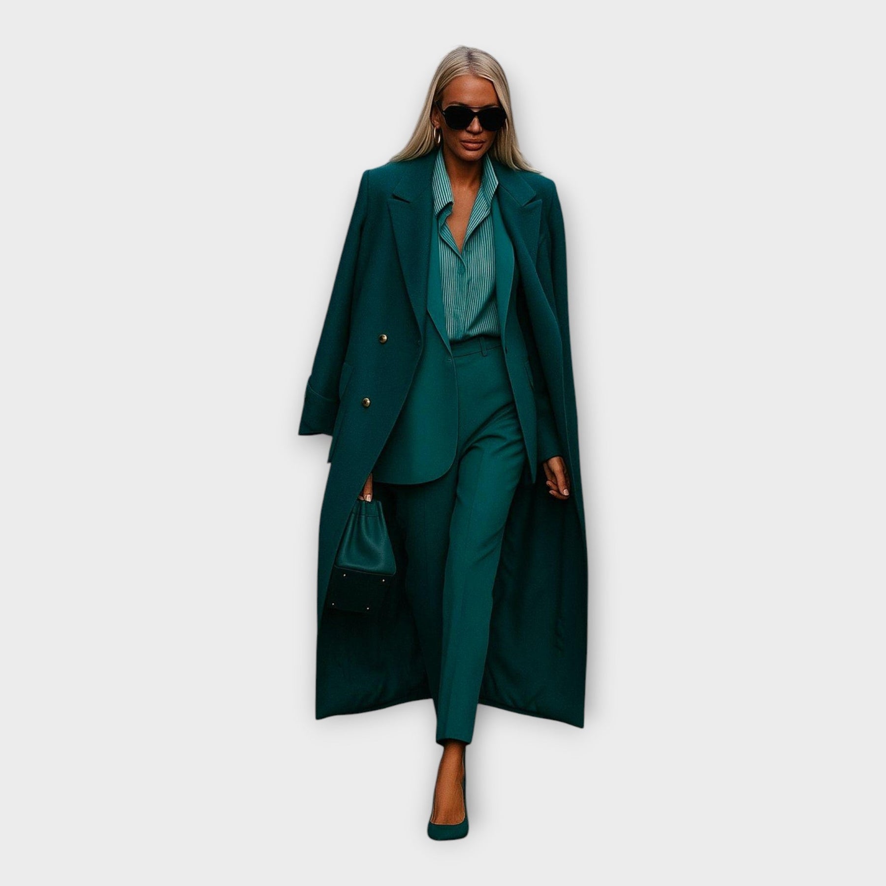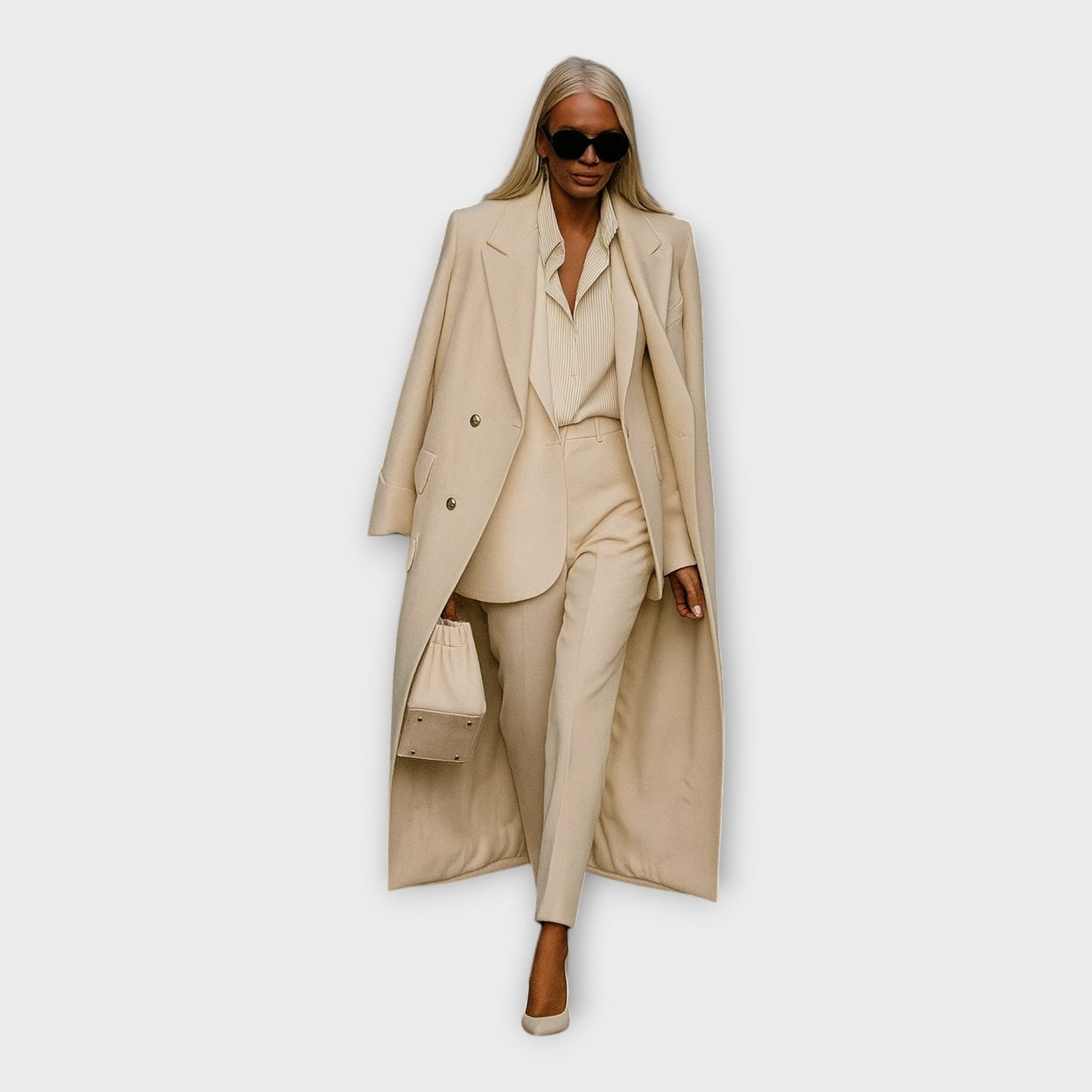 Κομψό σετ με παντελόνι και παλτό σε minimální γραμμή